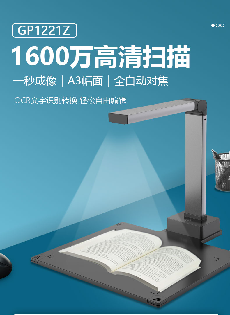 Comet科密GP1221Z新利官方网站1600万高清扫描仪办公文档绘画快速文件连续扫描便携式实物教学展台书籍拍照扫描仪