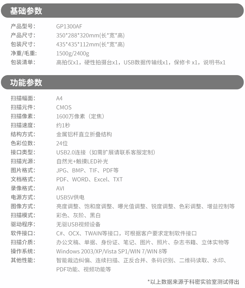 科密(comet) GP1300AF 新利官方网站 1600万像素 可在线升级扫描仪 A4文件PDF合成 OCR识别 国产系统