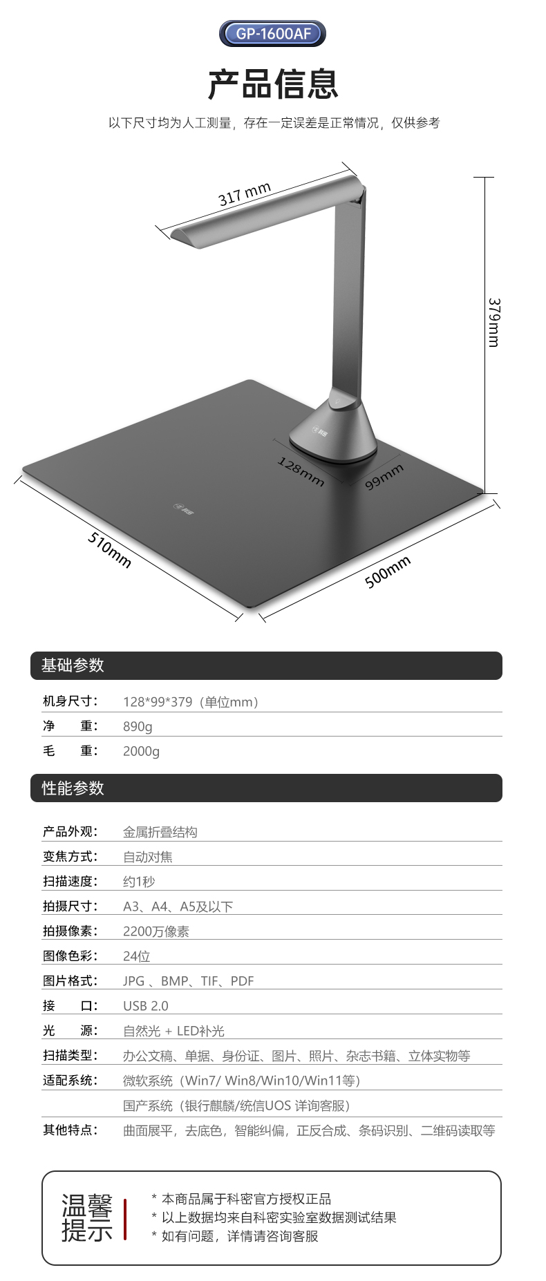 科密(comet) GP1600AF 新利官方网站 2200万像素 可在线升级A3A4扫描仪 PDF合成 OCR识别 书籍展平 国产系统