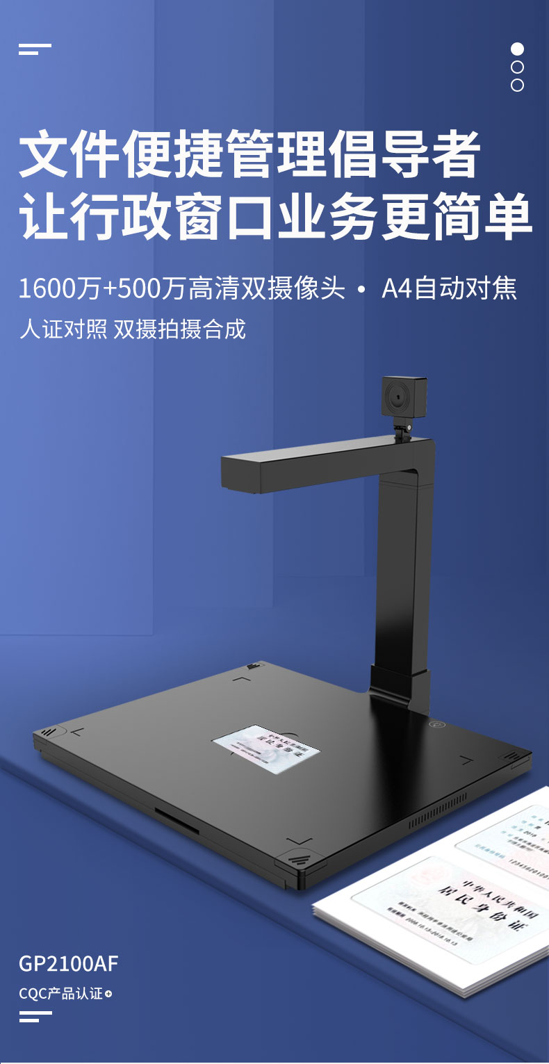 科密(comet) GP2100AF 新利官方网站 1600万+500万像素双摄A4扫描仪 文件PDF合成 银行行政中心 适配国产系统