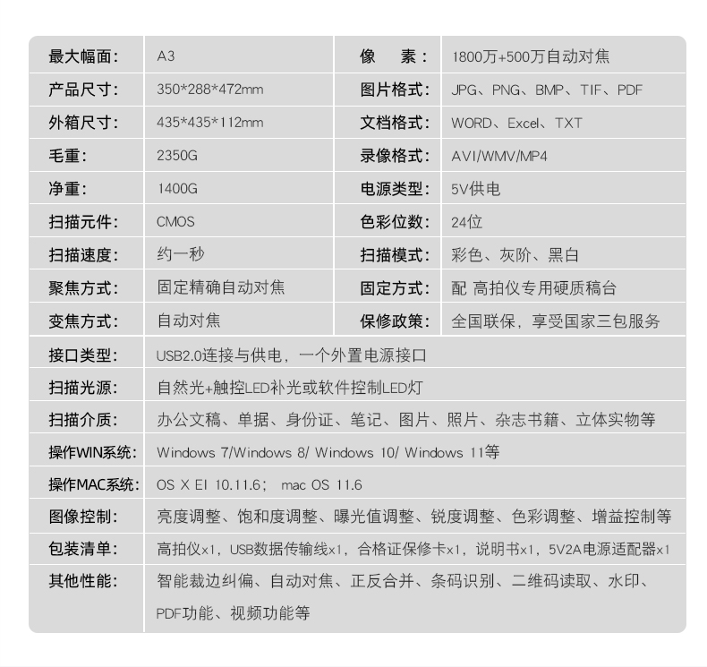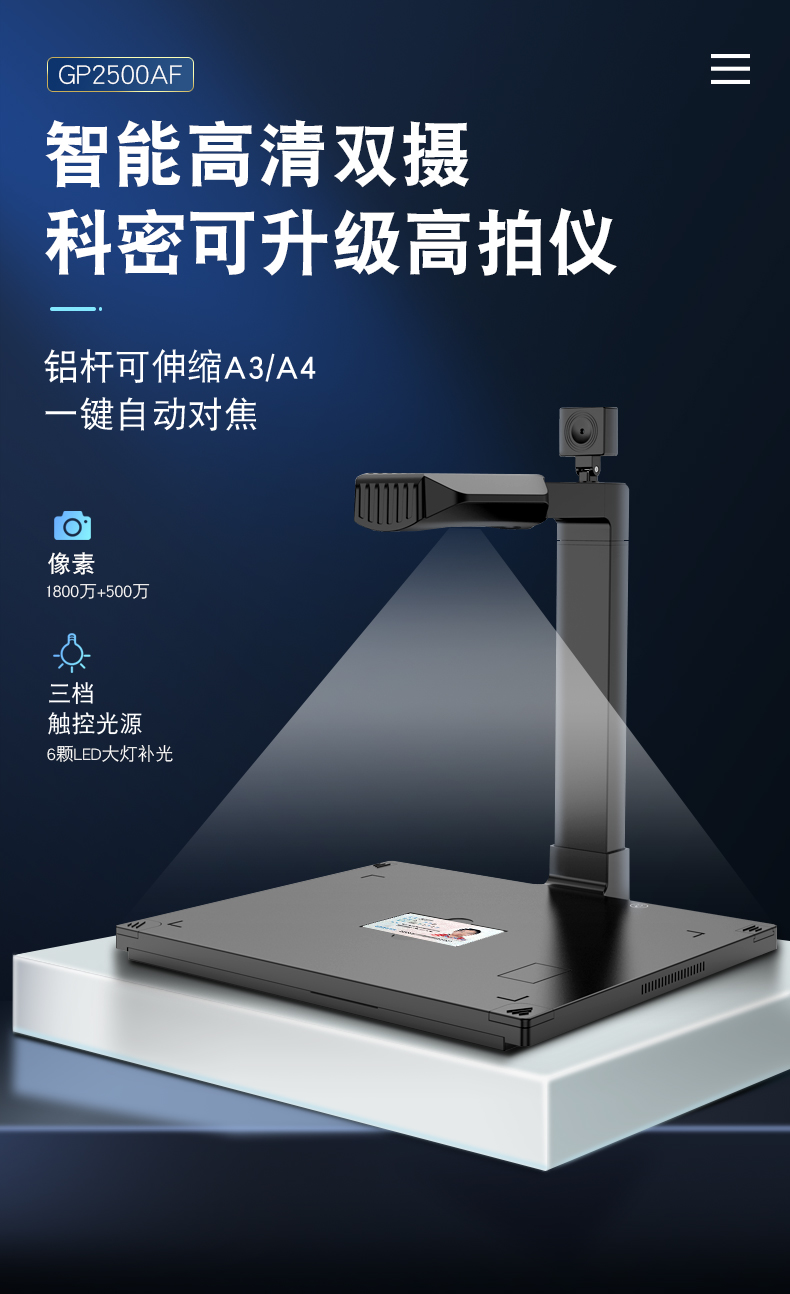 科密(comet) GP2500AF 新利官方网站 1800万+500万双摄A3A4扫描仪 投影录像 合同文件资料证件存档 支持国产系统