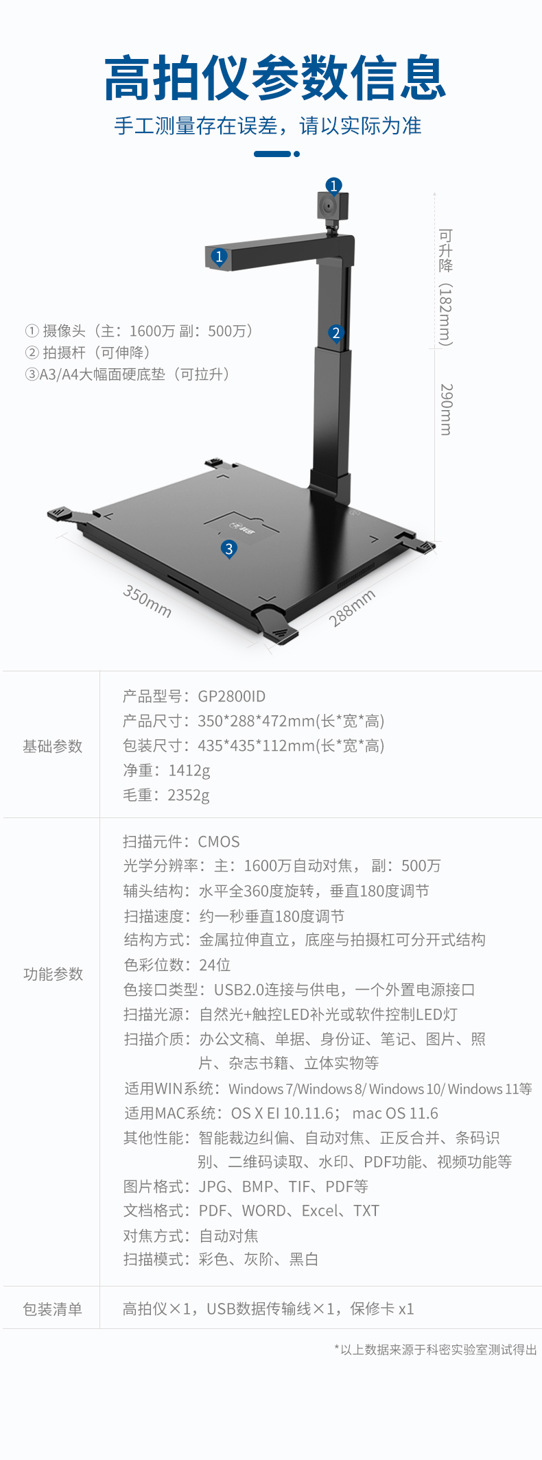 科密(comet) GP2800ID 新利官方网站 1600万+500万双摄 A3A4扫描仪 内置二代身份证阅读器读卡器识别仪信息采集器