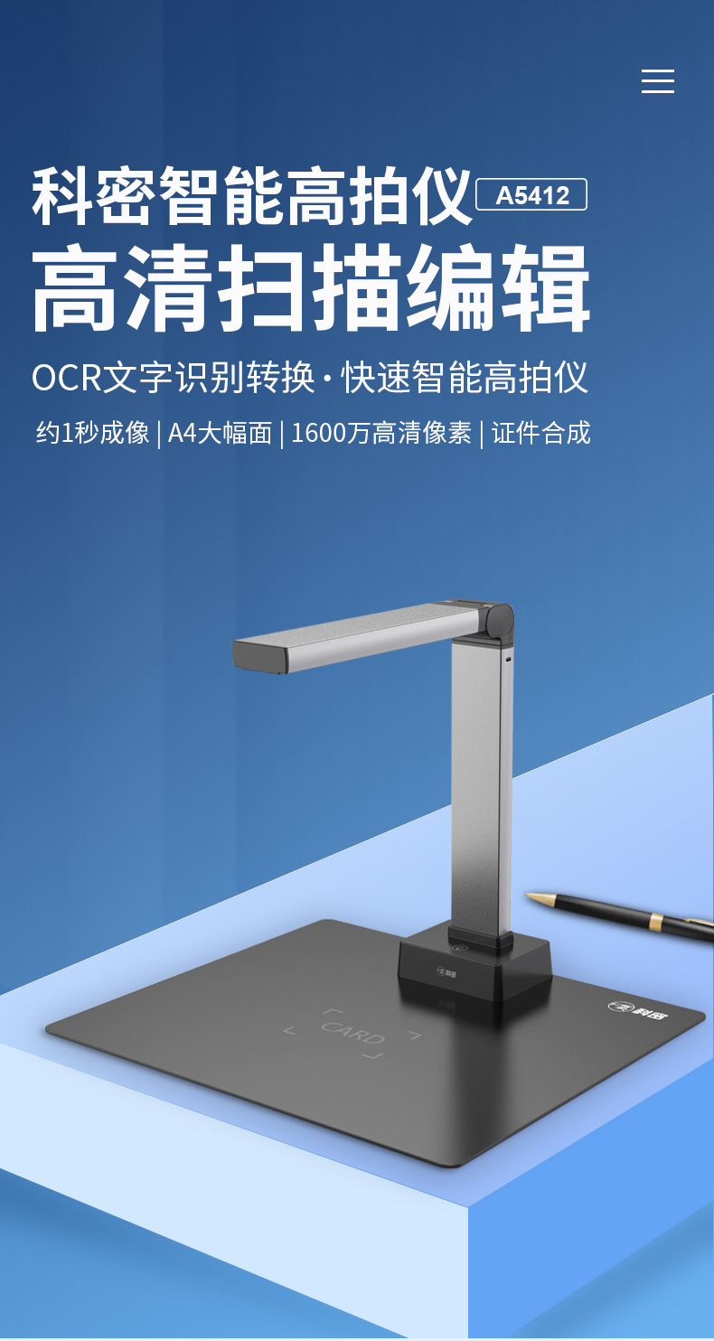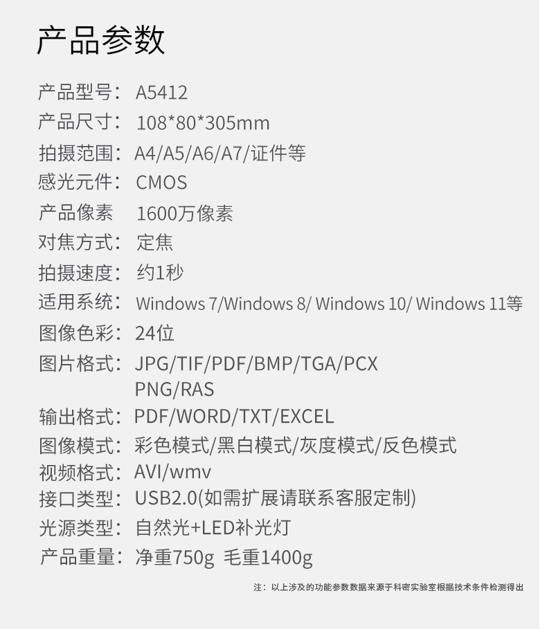 科密(comet) A5412 新利官方网站 1600万像素扫描仪 A4文件资料优化 OCR识别 统信麒麟国产系统二次开发