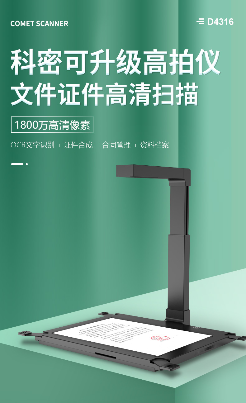 科密(comet) D4316 新利官方网站 1800万像素扫描仪 A3A4办公文档资料编辑优化 OCR识别 统信麒麟国产系统二次开发