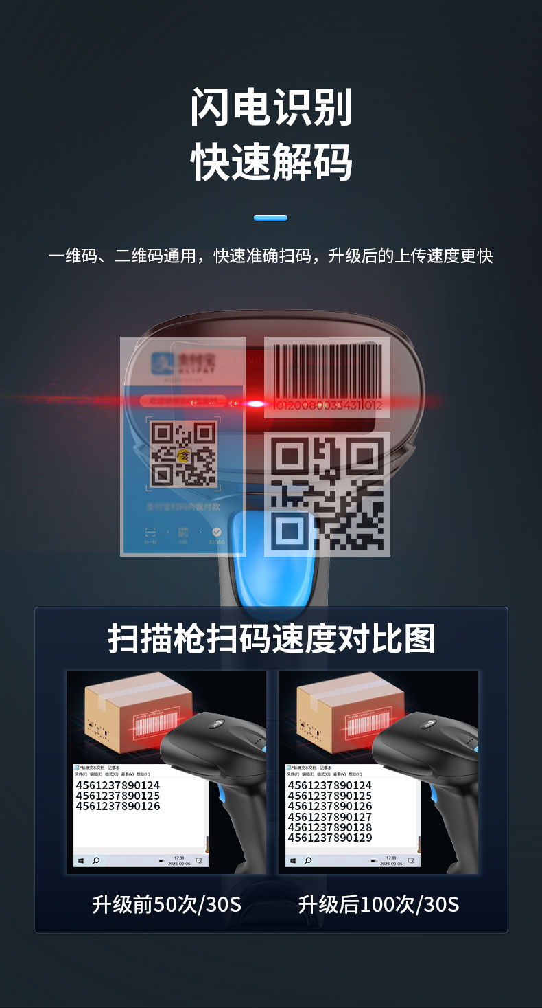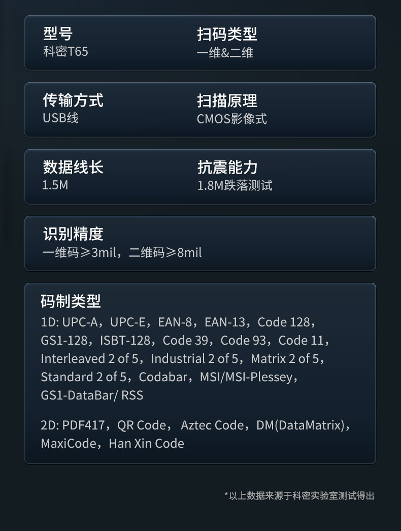 科密(comet)T65扫描枪扫码枪 有线一二维码条码枪 条形码超市收银快递仓库医药盘点 支持国产系统
