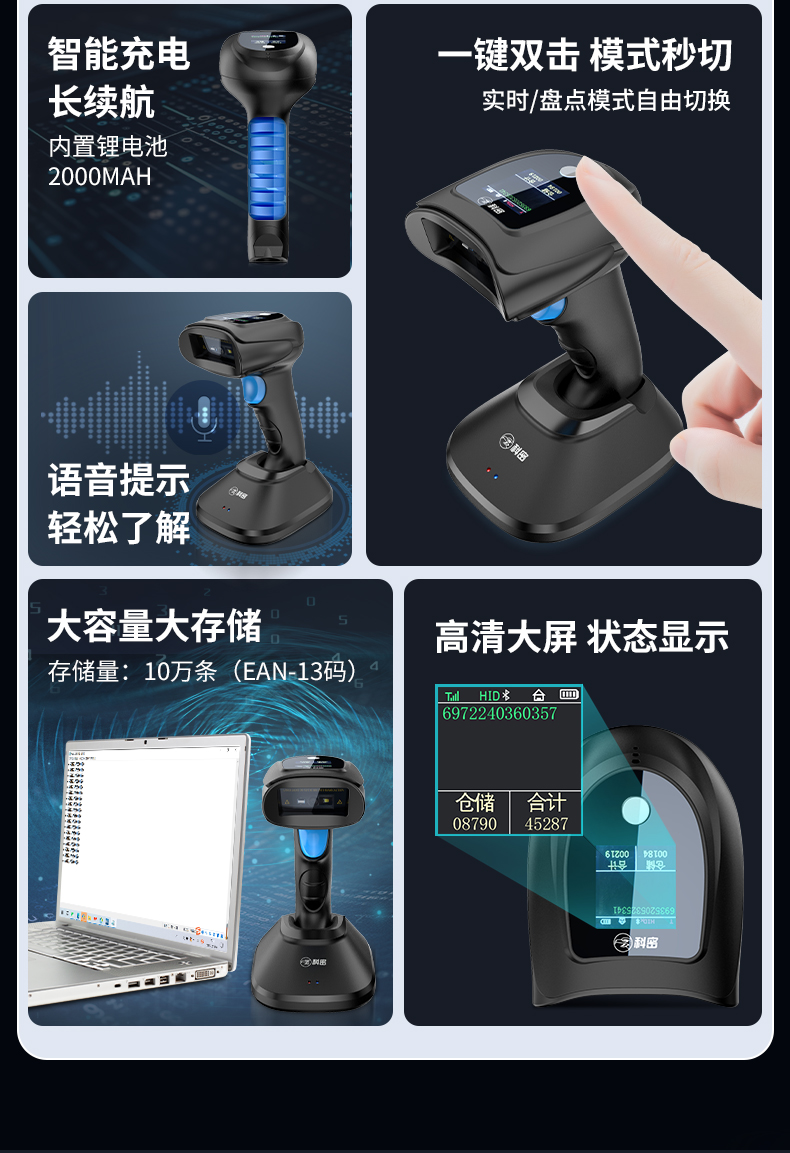 Comet科密T68D带屏幕二维码条码枪无线蓝牙扫描枪收银盘点商超收银扫码枪标配底座