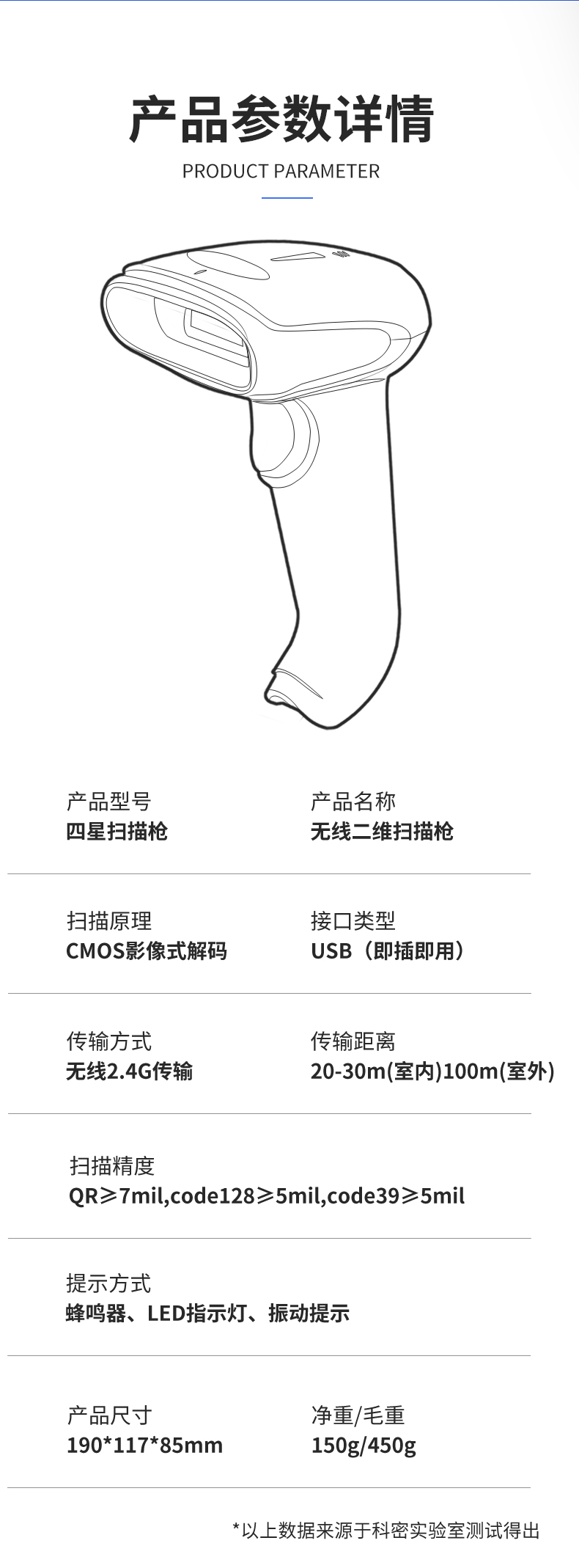 科密(comet)四星无线扫描枪一二维码条码枪扫码枪 商超烟酒零售服装药店 商品码金属码微小码医保码扫码器