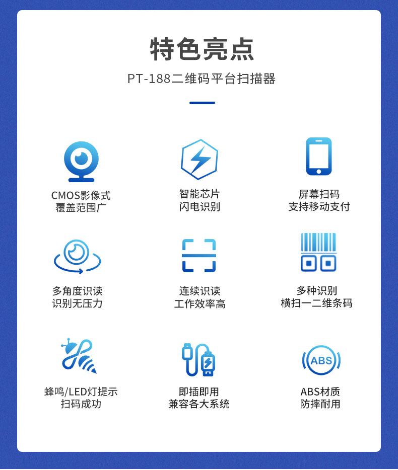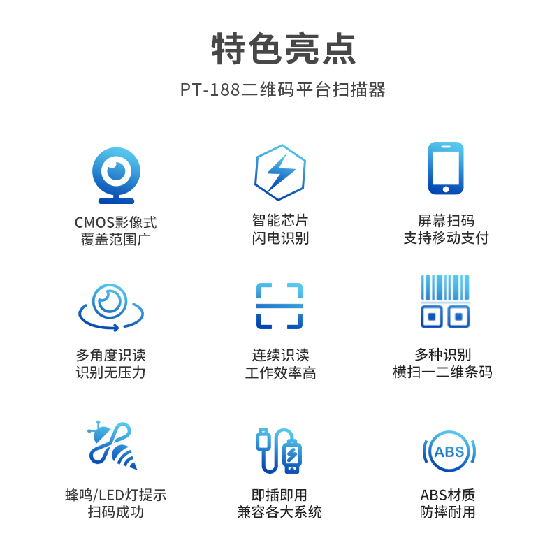 科密(comet)扫码扫描枪一二维平台扫码器 超市餐饮条码仓储物流 屏幕支付收款盒子PT-188 支持国产系统
