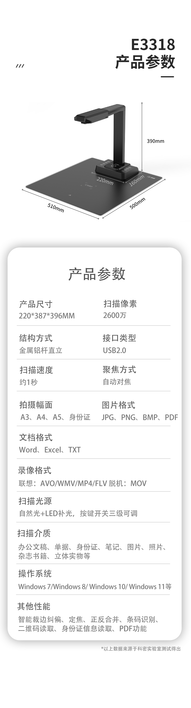 科密(comet) E3318 新利官方网站2600万像素扫描仪 A3A4幅面 曲面展平OCR图文识别