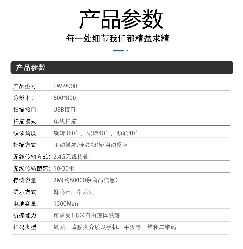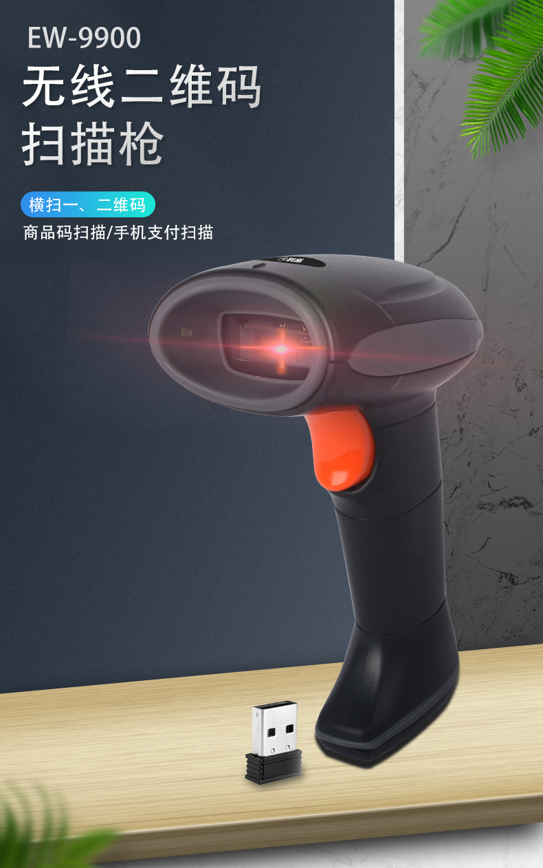科密无线一二维码扫码枪条码枪 项目烟酒餐饮零售屏幕收银 医药农资医保码疫苗码扫描枪EW-9900
